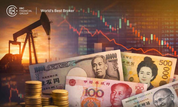 The rupee, yen, won, baht, rupiah, and peso are under the most visible pressure, though the trigger differs by country. Oil dependence is the common denominator.