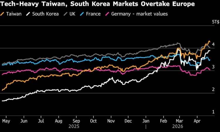 (Bloomberg) — The artificial intelligence boom has triggered a seismic reshuffling of global equity markets, with Taiwan and South Korea muscling past European nations one by one.
