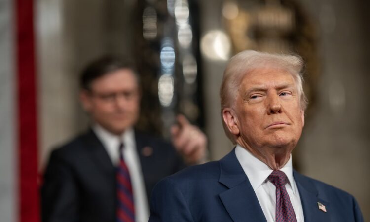 Donald Trump delivering remarks to a joint session of Congress.
