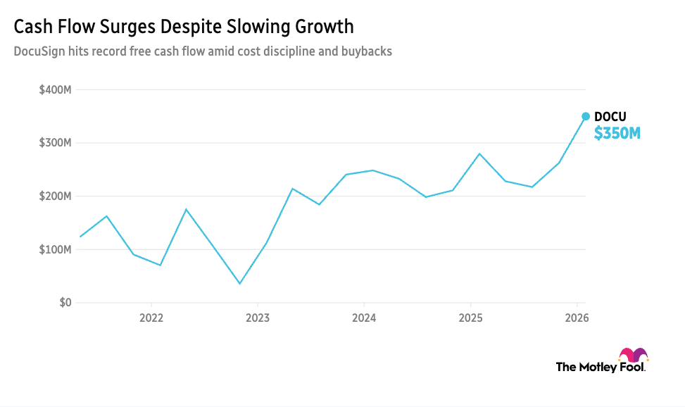 DocuSign (DOCU +2.86%) posted fourth-quarter revenue of $836.9 million, up 8%, and free cash flow of $350.2 million, while boosting its buyback authorization by $2 billion. Management is pitching artificial intelligence (AI) as the next leg of the story, with CEO Allan Thygesen saying, “Docusign’s AI-native IAM platform has established clear market leadership” and identity and access management (IAM) topping $350 million in annual recurring revenue (ARR) in fiscal 2026.