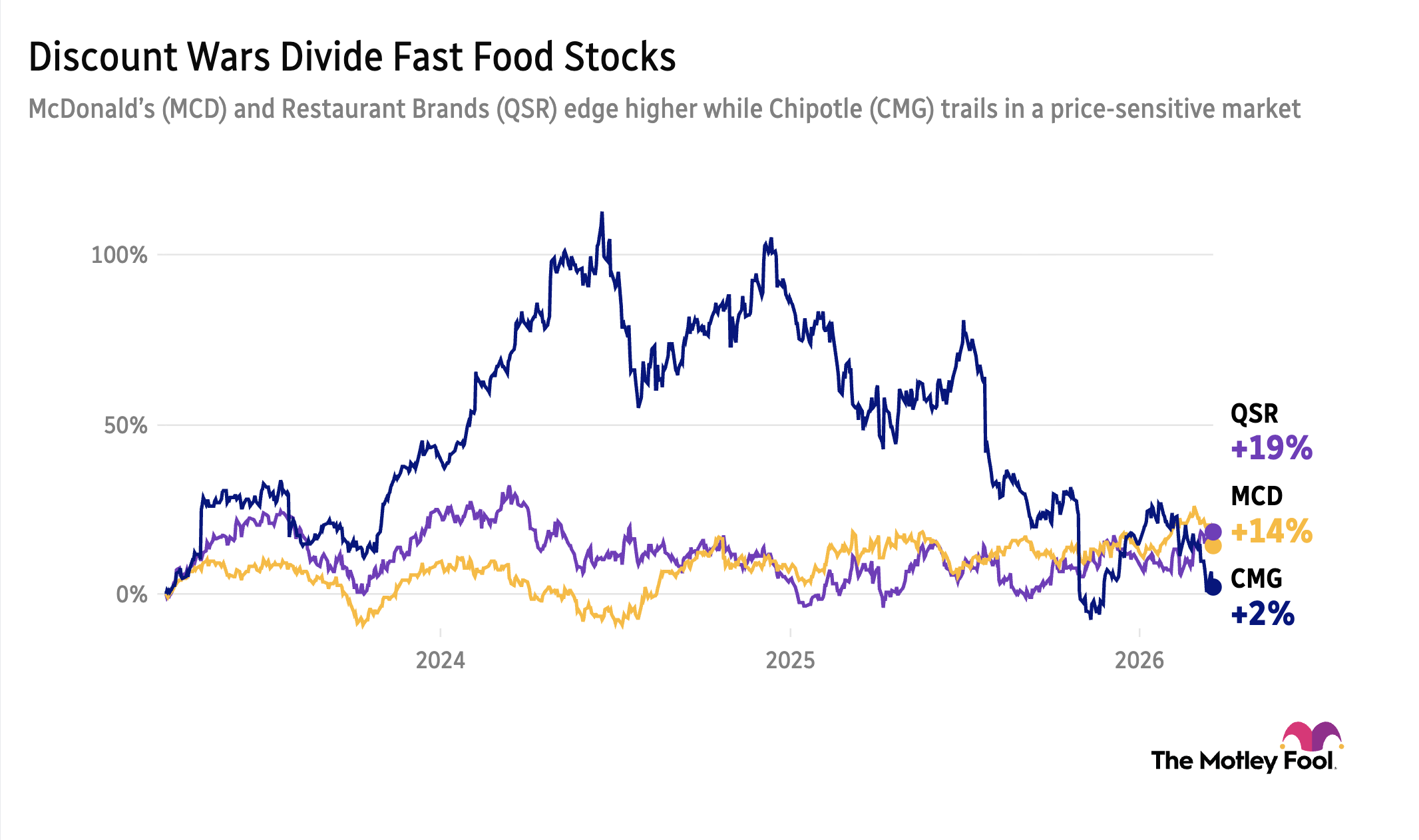 Burger chains like McDonald’s (MCD 0.24%) and Restaurant Brands (QSR 0.47%) are leaning into discounts even as beef costs surge 48% year over year, tightening already thin margins. Industry profitability averaged just 4% last year, and heavier promotions risk further erosion as traffic softens and value-seeking customers dominate. Promotions have nearly tripled vs. 2019 levels, signaling demand pressure and intensifying competition for price-sensitive customers. McDonald’s is rolling out a new $3 menu, while peers double down on deals to defend share, even as herd reductions keep beef prices elevated. For contrast, Chipotle (CMG +1.29%)—with a different menu mix and pricing power—faces less direct exposure to the burger discount war.