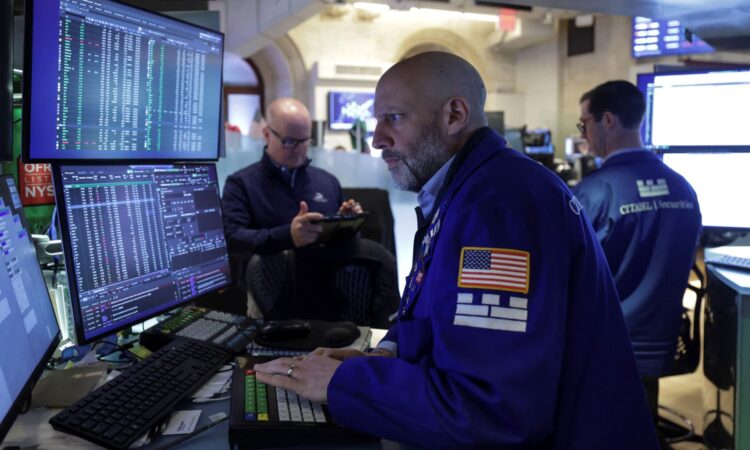 Traders work on the floor at the New York Stock Exchange (NYSE) in New York City, U.S., April 23, 2026.