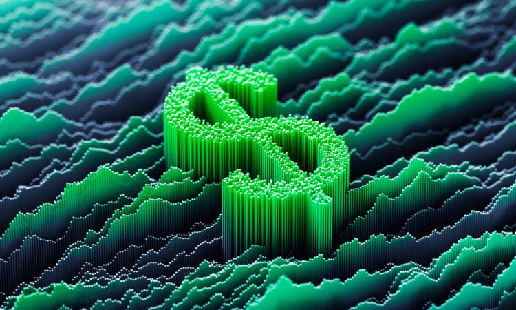 A dollar sign in a sea of charts.