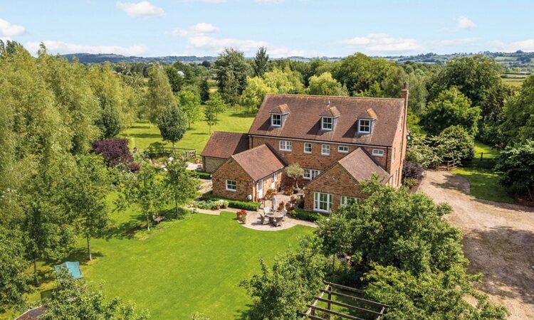 A farmhouse built in 2004 in a traditional style in a village on the banks of the River Avon, close to Malmesbury, which The Sunday Times rates as the second-best place to live in 2026. It has vaulted, beamed ceilings, an open fireplace and a kitchen with an Aga and French doors leading onto the garden. 5 bedrooms, 4 bathrooms, 2 reception rooms, office, summerhouse, 2 acres.