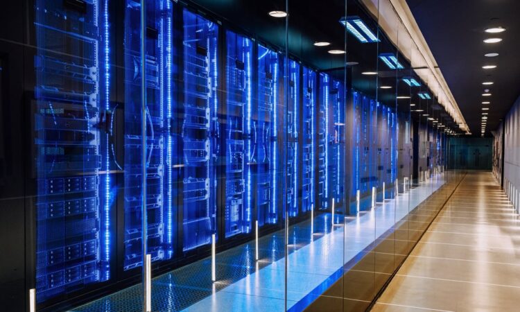 A row of servers in a data center.
