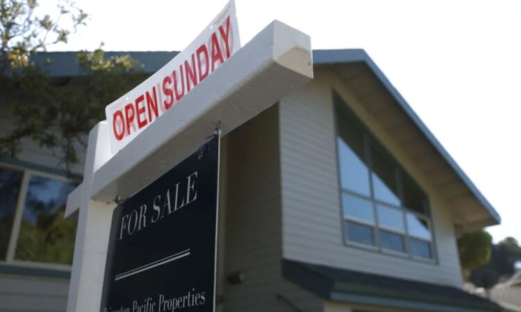 A sign is posted in front of a home for sale in San Rafael, California. (Justin Sullivan/Getty Images)